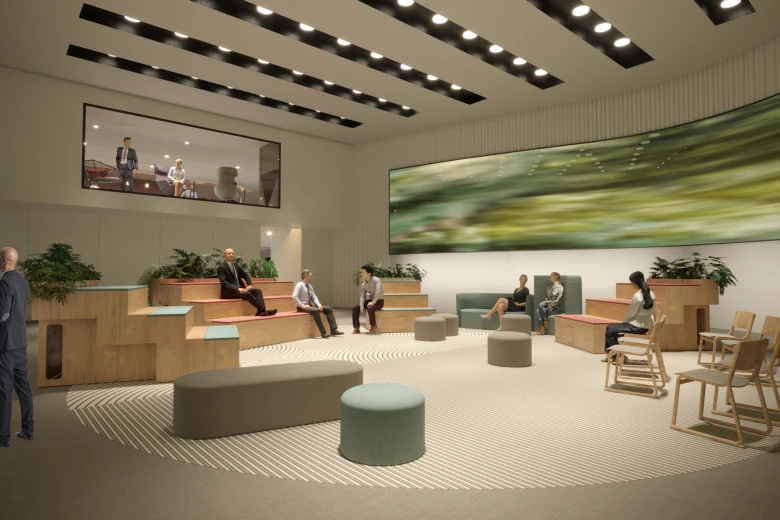 Hier legten wir grossen Wert auf die Bedürfnisse der Nutzergruppen, einschließlich den Führungskräften, den Mitarbeitenden sowie den Gästen, und integrierten personalisierte, exzellente Hospitality-Konzepte, um innovative Arbeitsprozesse zu unterstützen.