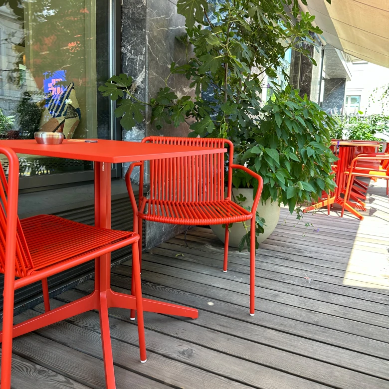Zingg-Lamprecht ist stolz darauf, Teil dieses einzigartigen Projektes zu sein. Mit der Lieferung des hochwertigen Aussenmobiliars inklusive farblich dazu passender Verschattungsmöglichkeiten tragen wir dazu bei, dass die Flor Café Bar den kreativen Zeitgeist der 1930er Jahre neu aufleben lässt – an einen Ort, der Geschichte und Moderne auf eindrucksvolle Weise vereint.