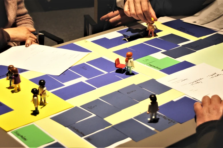 Lange Wartezeiten, komplizierte Wege und generelle Überforderung von Seiten der Patientin waren in der Patientenerlebniskette sichtbar. Die Teilnehmenden simulierten die Wege dieser Patientin auf der Tischplatte, eruierten dabei deren Bedürfnisse und mögliche Prozessoptimierungen.