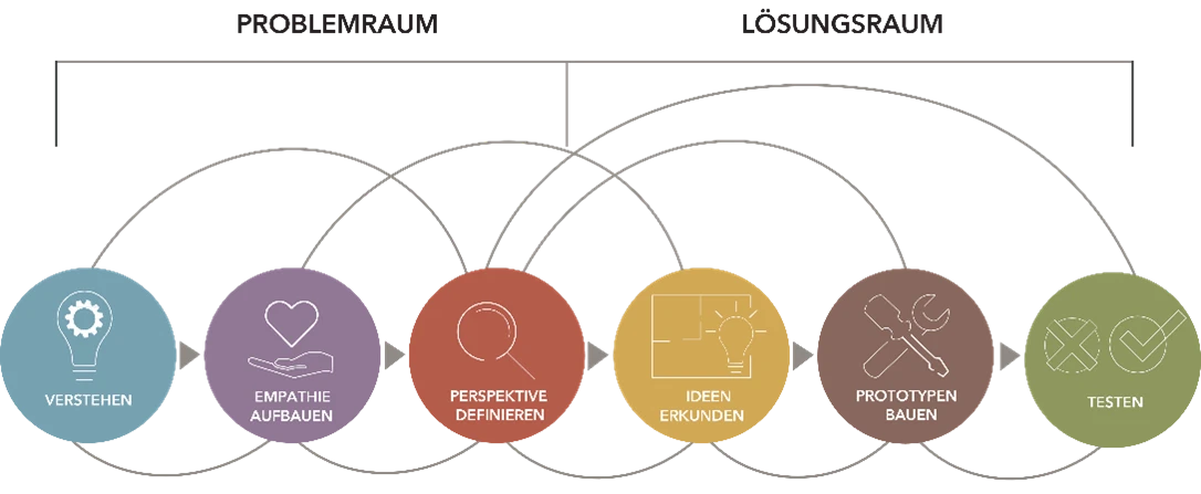 Design Thinking ist eine nutzerzentrierte und iterative Methode für die Lösung von komplexen Problemen und hat sich weltweit zur favorisierten Vorgehensweise in der Innovationsentwicklung etabliert. Der Design Thinking Prozess bildet der Kern der Methode, in dessen Zentrum die Nutzer und deren Bedürfnisse stehen.
