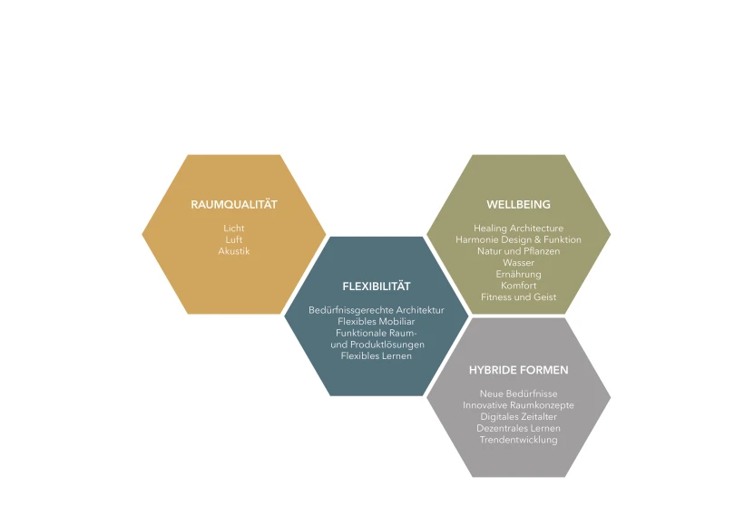 Der Raum bzw. die Verbindung zwischen Raum. Mensch und Organisation spielt also eine wesentliche Rolle bei der Gestaltung und Umsetzung von «New Work». Die Arbeitsumgebung kann die Kultur, die Produktivität und das Wohlbefinden der Mitarbeitenden stark beeinflussen. Es geht nicht nur darum, wie Menschen arbeiten, sondern vielmehr auch wo sie arbeiten und welche Art von Umgebung sie umgibt.