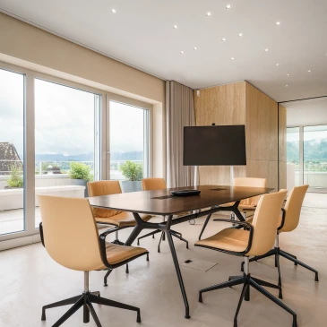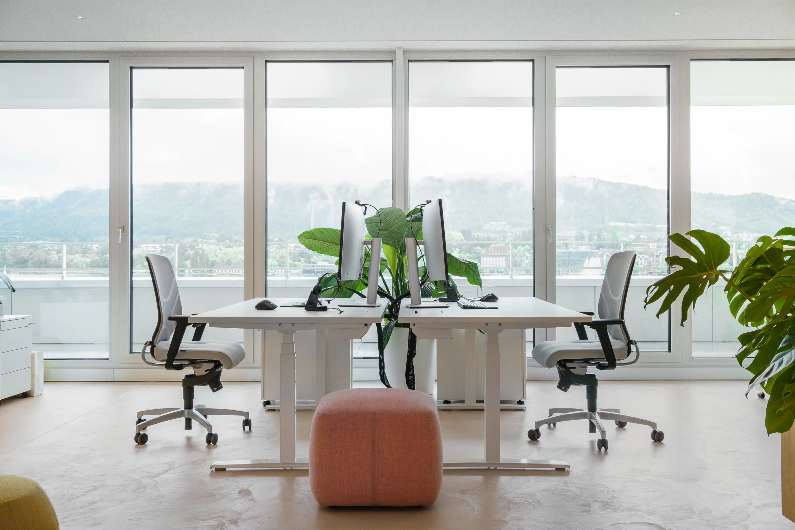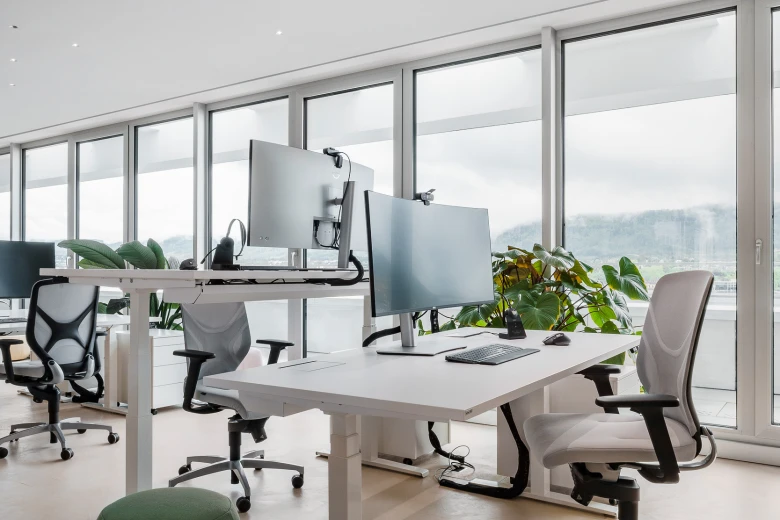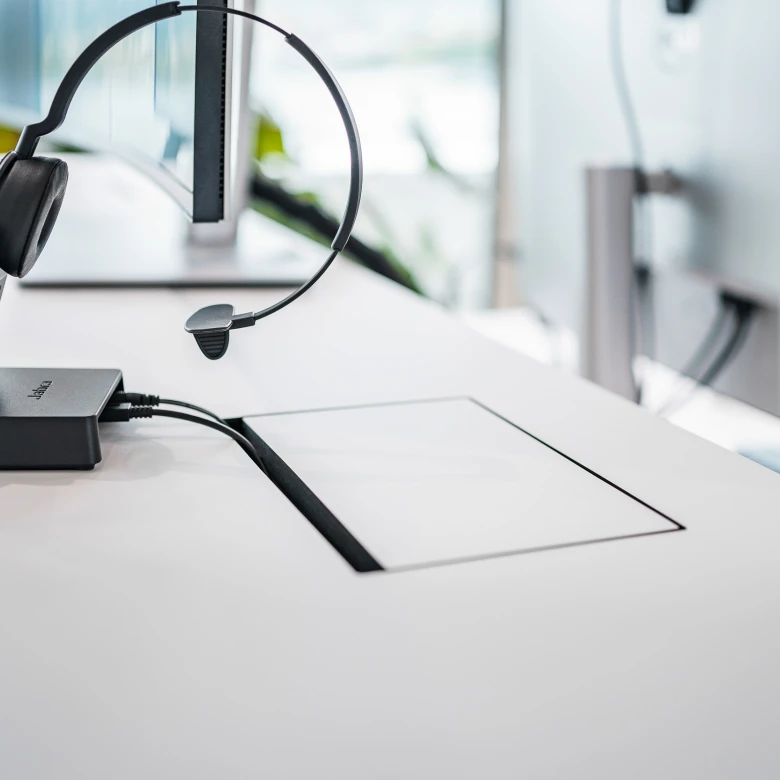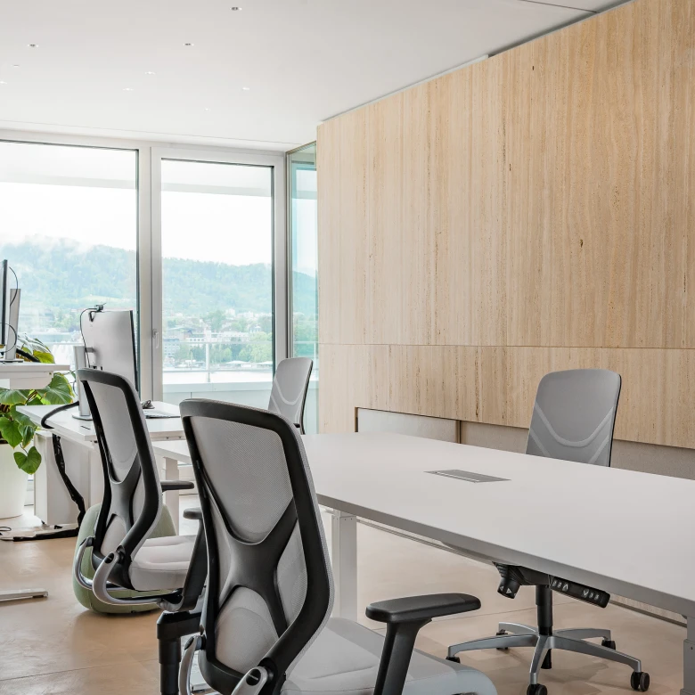 So wurden auf Kundenwunsch Arbeitstische mit einem individualisierten Kabelmanagement-System realisiert und der Sitzungstisch kann höhenverstellt und somit an die Bedürfnisse der Mitarbeiter angepasst werden.