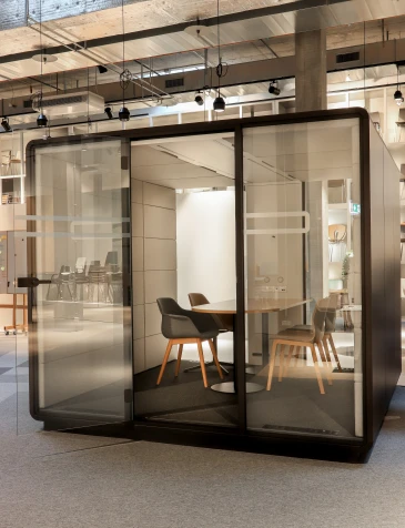 Our goal is not absolute silence, because this is unnatural and unhealthy. Instead, Hush provides the ideal acoustic environment for users. It attenuates noise in such a way that colleagues are not disturbed either.Hush booths are mobile and modular - they can be easily expanded, adapt to the team, clients or project.