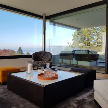Unser Kunde legte großen Wert auf die Verbindung zwischen den Innenräumen und der herrlichen Terrasse. Wir ergänzten das ruhige, ausgewogene Interieur mit sorgfältig ausgewählten Accessoires.