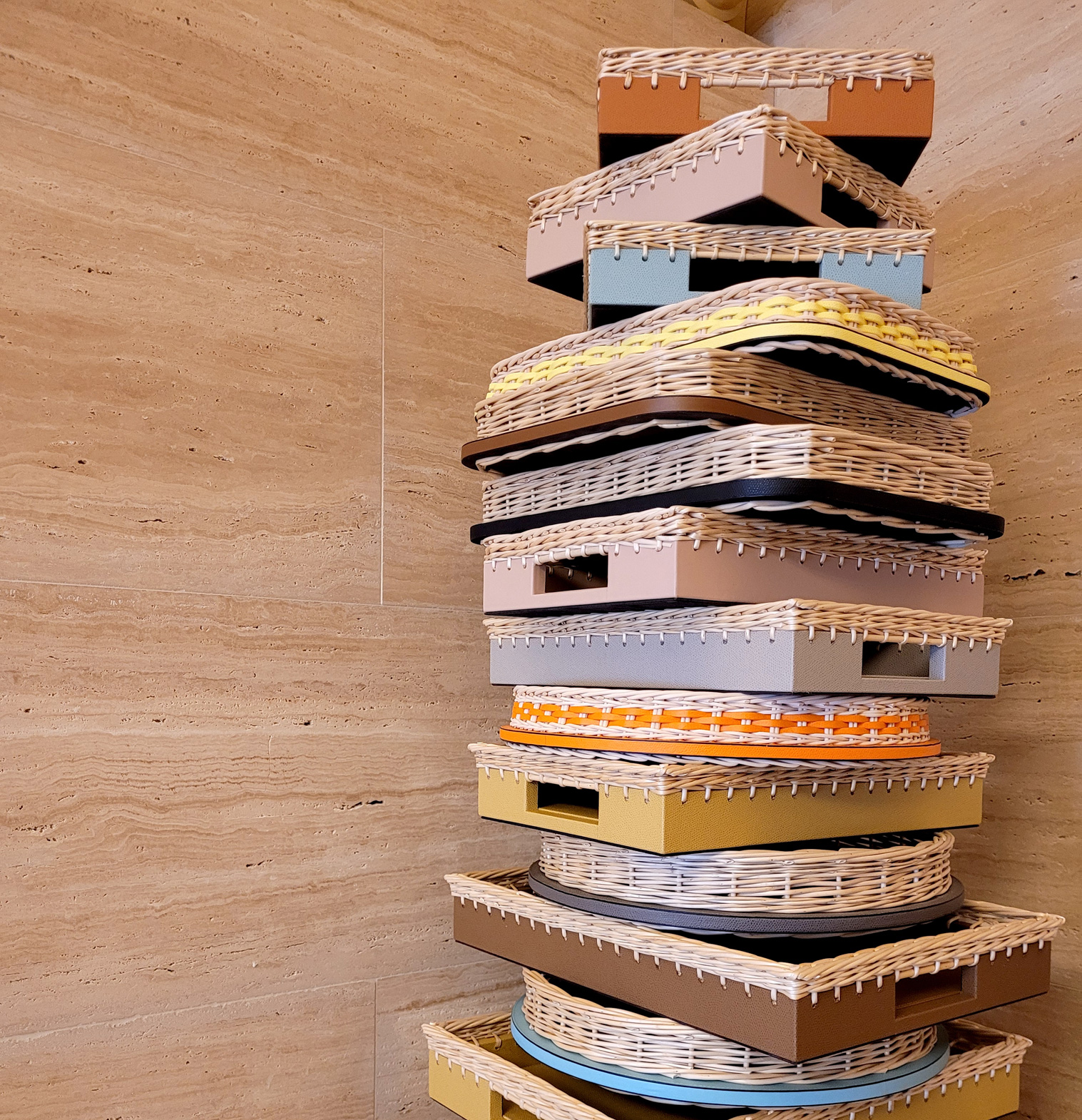 By combining tradition and modernity, craftsmanship and design, Giobagnara, under the creative direction of Stéphane Parmentier, today stands for perfectly formed design. The product portfolio ranges from small and large living and office accessories to small pieces of furniture made of leather, creations made of rattan or willow, marble and travertine, to customised and individual solutions for interior designers, yacht outfitters or boutique hotels.
